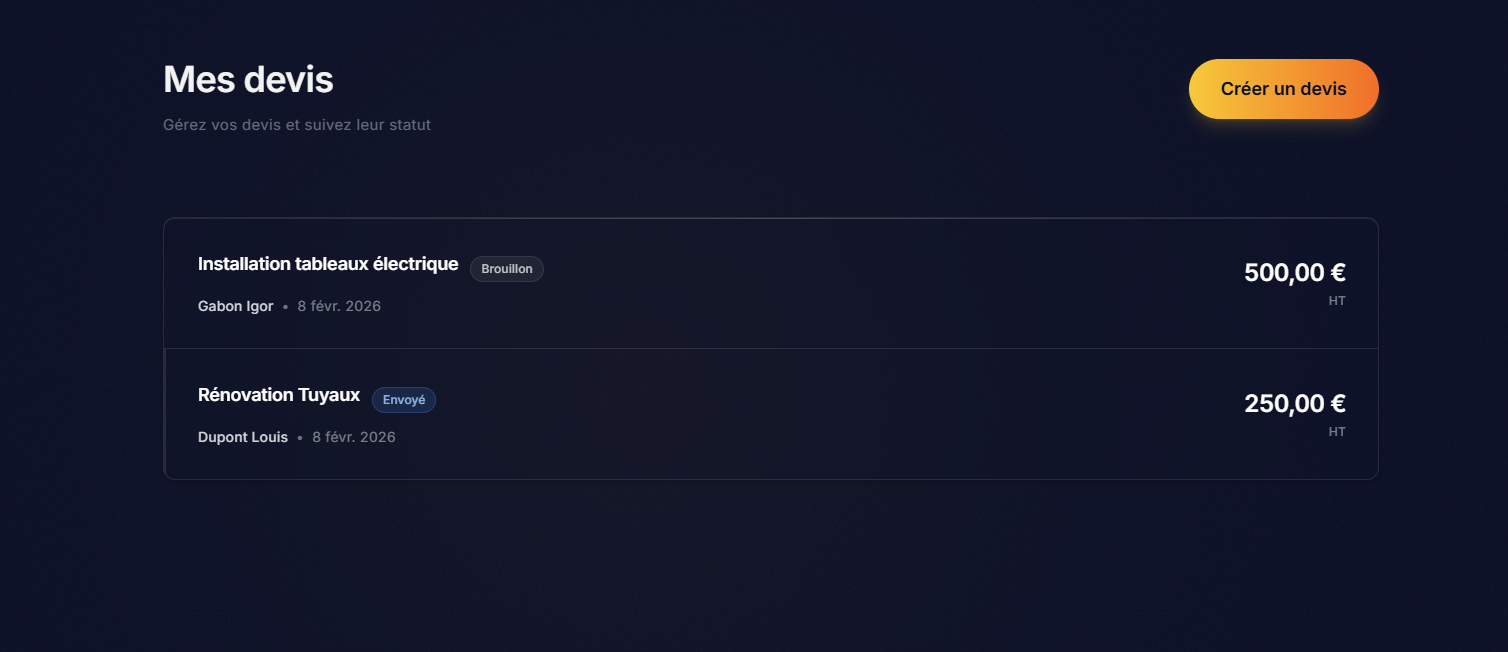 Créez, modifiez et envoyez vos devis en quelques secondes. Transformation en facture en 1 clic.